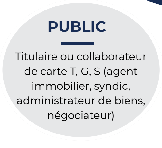Toute personne titulaire de l'attestation d'habilitation doit ainsi remplir son obligation de formation professionnelle continue. Un agent immobilier ou le collaborateur d'un agent immobilier doit effectuer 14h de formation par an ou 42 heures au cours de 3 années consécutives d'exercice, en présentiel ou en ligne.